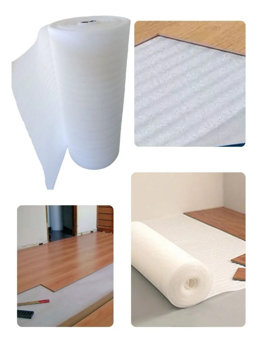 Manta simples 2mm para pisos laminados e vinílicos. Auxilia no conforto acústico, nivelamento e proteção do piso.